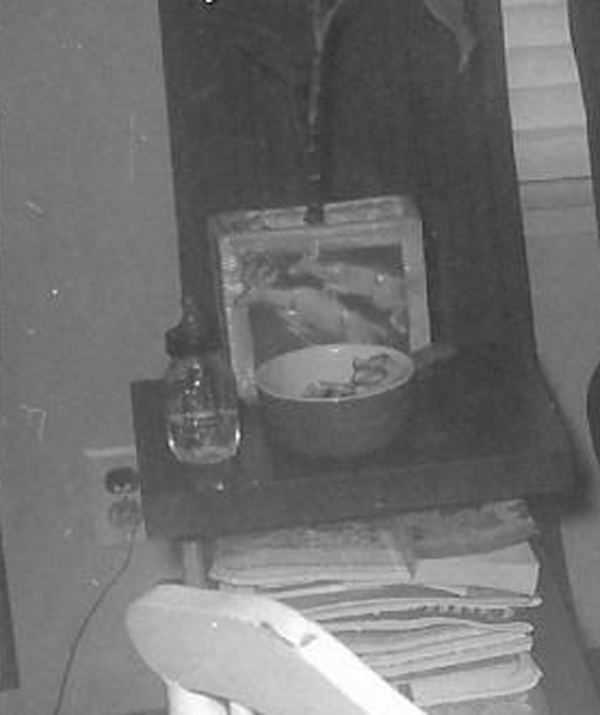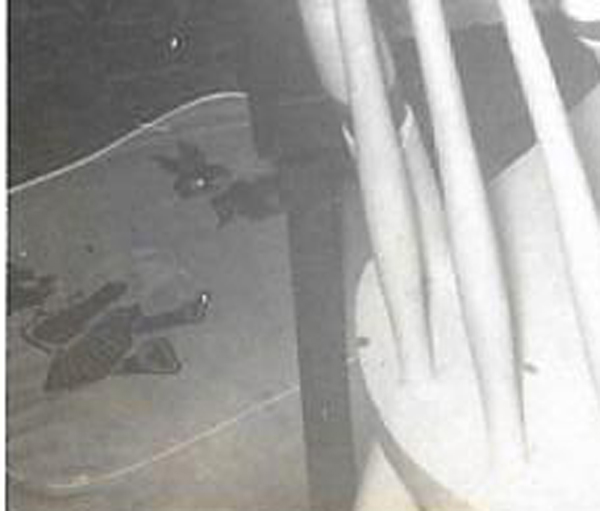 If you look at the bottom left, you can see something lying on the floor. It looks like a blanket or a pad or something. I don’t know what.