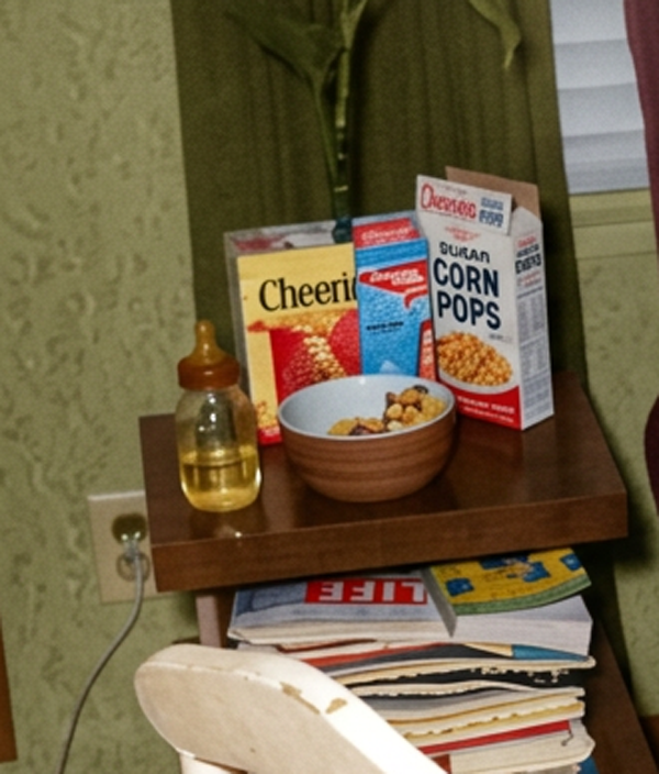 You’ll notice in the background to the left, there’s some kind of end table, with magazines on the bottom.
