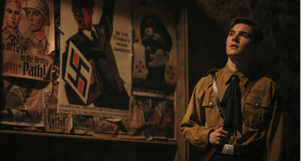 That’s too bad because it’s a fascinating story about actual events. Ewan Horrocks plays Helmuth Hübner, a 16-year-old German teen who is part of a posse of four boys – himself, Salomon Schwarz (played by Nye Occomore), Karl-Heinz Schnibbe (Ferdinand McKay) and Rudi Wobbe (Daf Thomas). They jump off bridges together, beat up obnoxious Hitler Youth leaders together, and read subversive books. Then, Helmuth’s older brother returns from the front with a forbidden item – a radio that allows the boys to hear broadcasts from outside the country. It is from those broadcasts Helmuth learns the truth about Nazi Germany. Meanwhile Salomon, who is Jewish, is picked up by the SS and dispatched to Auschwitz. The convergence of those two events radicalizes young Helmuth, who borrows his church’s typewriter to create leaflets critical of Hitler and the Nazis. A local SS officer, Erwin Mussener (Rupert Evans) finds some of Helmuth’s leaflets and launches an investigation. From that point the movie follows the expected trajectory.
