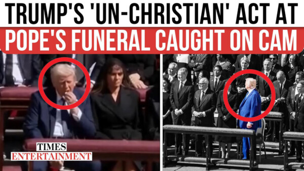 This is a screen capture of an ETimes video about Donald Trump's behavior at the Pope Francis' funeral in April 2025.